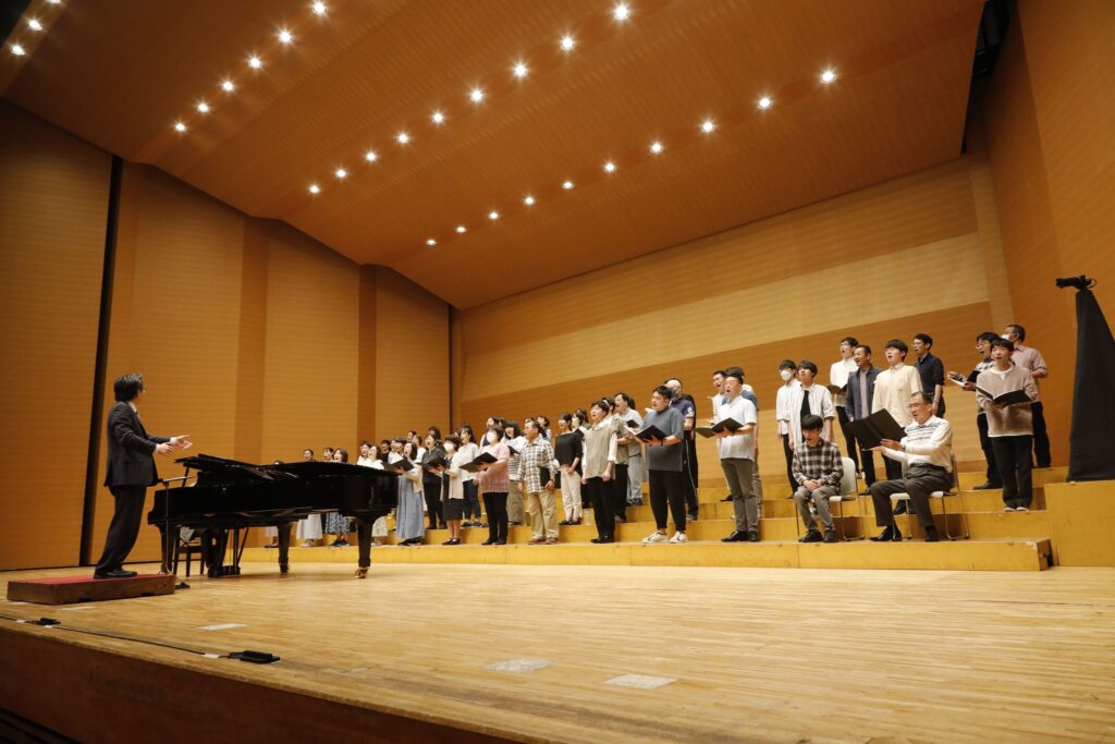 今回は新潟の合唱団ユートライさんとの合同合唱団としての出演で、約5年ぶりの共演となりました。 本番に向けて行った合同練習(春季強化練習2日目)では久々の再会を喜ぶ団員の姿も見られ、コロナ禍を経て別々の拠点で活動する2団が一堂に会する喜びを分かち合いました。