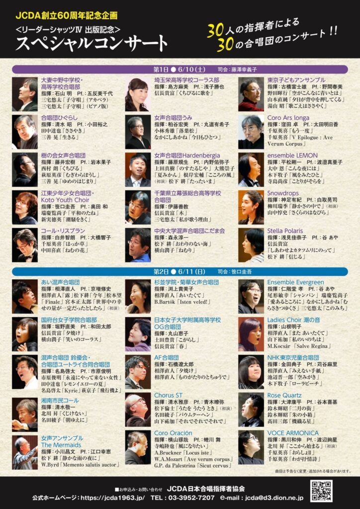 今回は、JCDA創立60周年記念企画という事で、リーダーシャッツIVの出版を記念した、30の合唱団及び指揮者による大変豪華なコンサートでした。 名曲・新曲揃いの特別な舞台で、大勢のお客さまに私たちの歌をお届けでき本当に光栄です。 ユートライさんとの合同ステージはとても刺激的で幸せな時間でした。 この舞台を弾みにして、今後も引き続き良い音楽をお届けするべく励んでまいります。